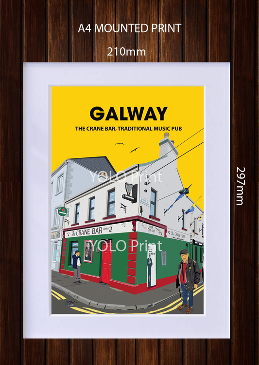 Galway Postcard or A4 Mounted Print or Fridge Magnet- The Crane Bar