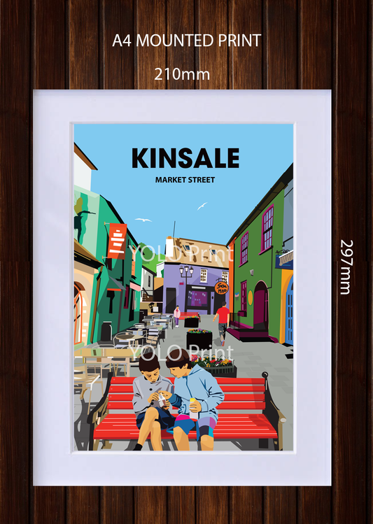 Kinsale Postcard or A4 Mounted Print or Fridge Magnet - Kinsale Market Street