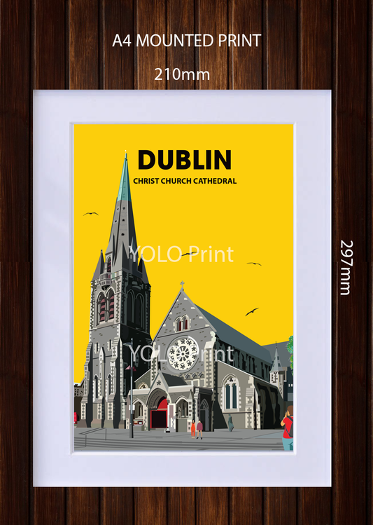 Dublin Postcard or A4 Mounted Print or Fridge Magnet - Christ Church Cathedral