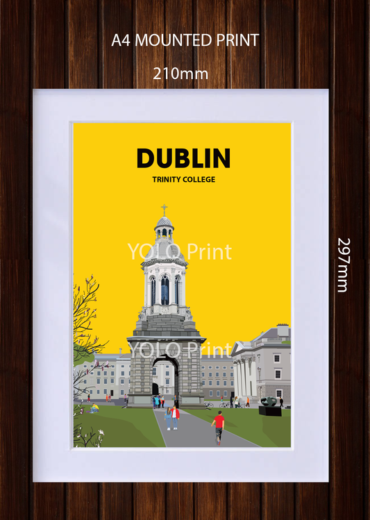 Dublin Postcard or A4 Mounted Print or Fridge Magnet - Trinity College