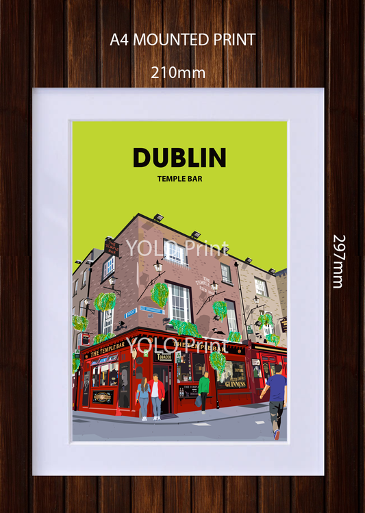Dublin Postcard or A4 Mounted Print or Fridge Magnet - Temple Bar