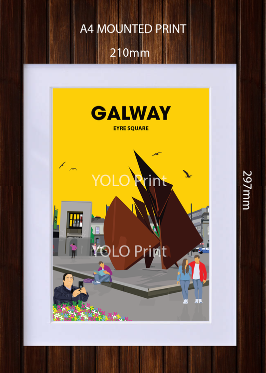 Galway Postcard or A4 Mounted Print or Fridge Magnet - Eyre Square