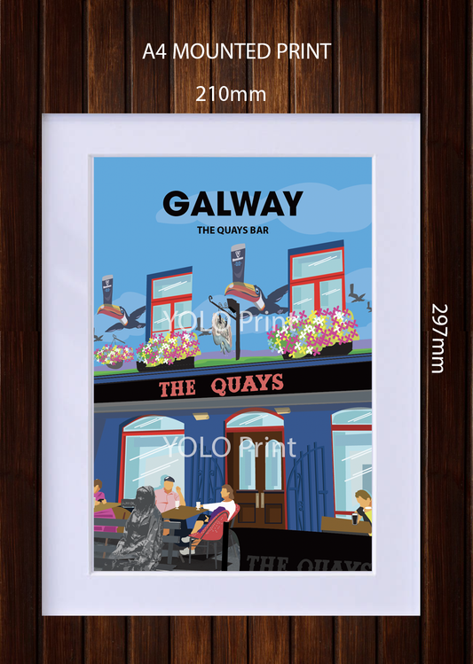 Galway Postcard or A4 Mounted Print or Fridge Magnet - The Quays Bar