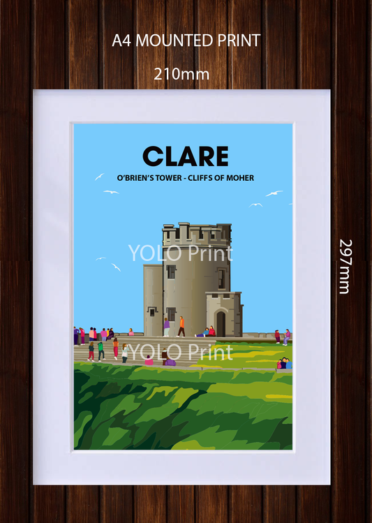 Clare Postcard or A4 Mounted Print or Fridge Magnet - OBriens Tower - Cliffs of Moher