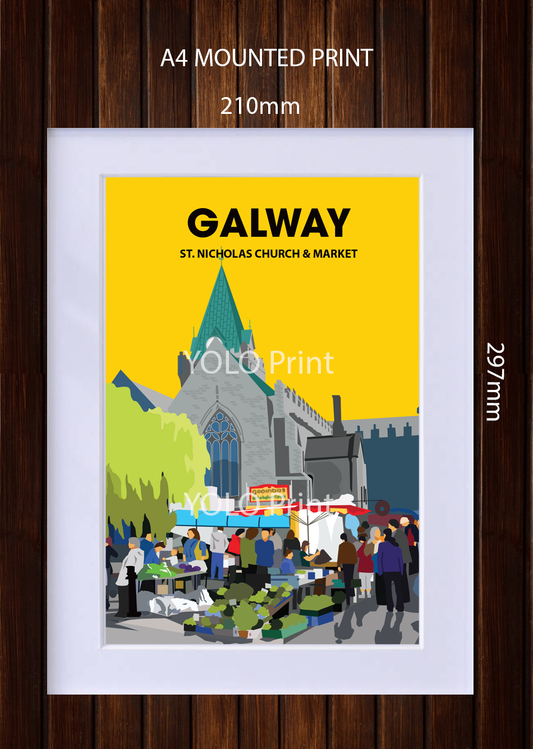 Galway Postcard or A4 Mounted Print - St. Nicholas Church and Market
