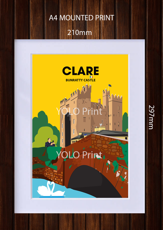 Clare Postcard or A4 Mounted Print or Fridge Magnet - Bunratty Castle