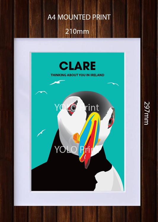 Clare Postcard or A4 Mounted Print or Fridge Magnet - Puffin - Thinking about you in Ireland