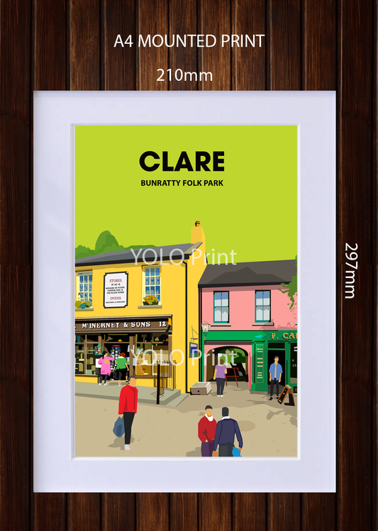 Clare Postcard or A4 Mounted Print or Fridge Magnet - Bunratty Folk Park