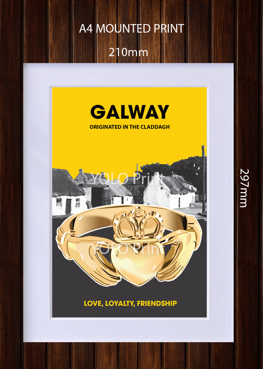 Galway Postcard or A4 Mounted Print or Fridge Magnet - Claddagh Ring with QR CODE Link