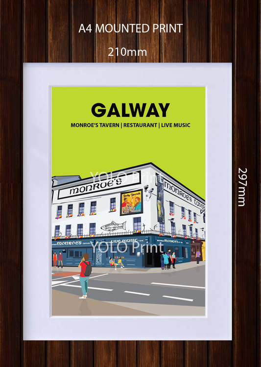 Galway Postcard or A4 Mounted Print or Fridge Magnet - Monroes Tavern