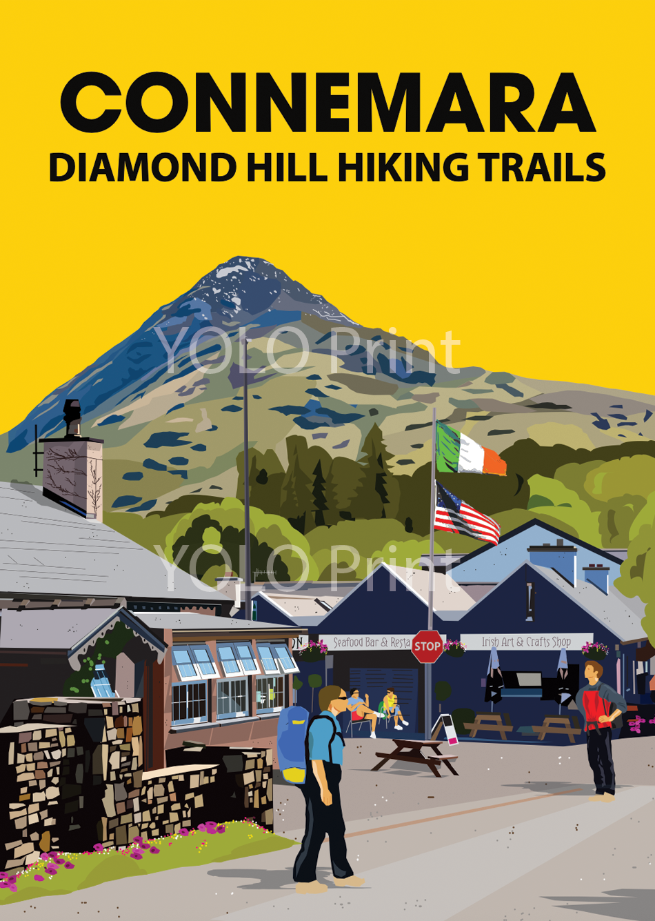 Galway Postcard or A4 Mounted Print or Fridge Magnet - Diamond Hill, Connemara